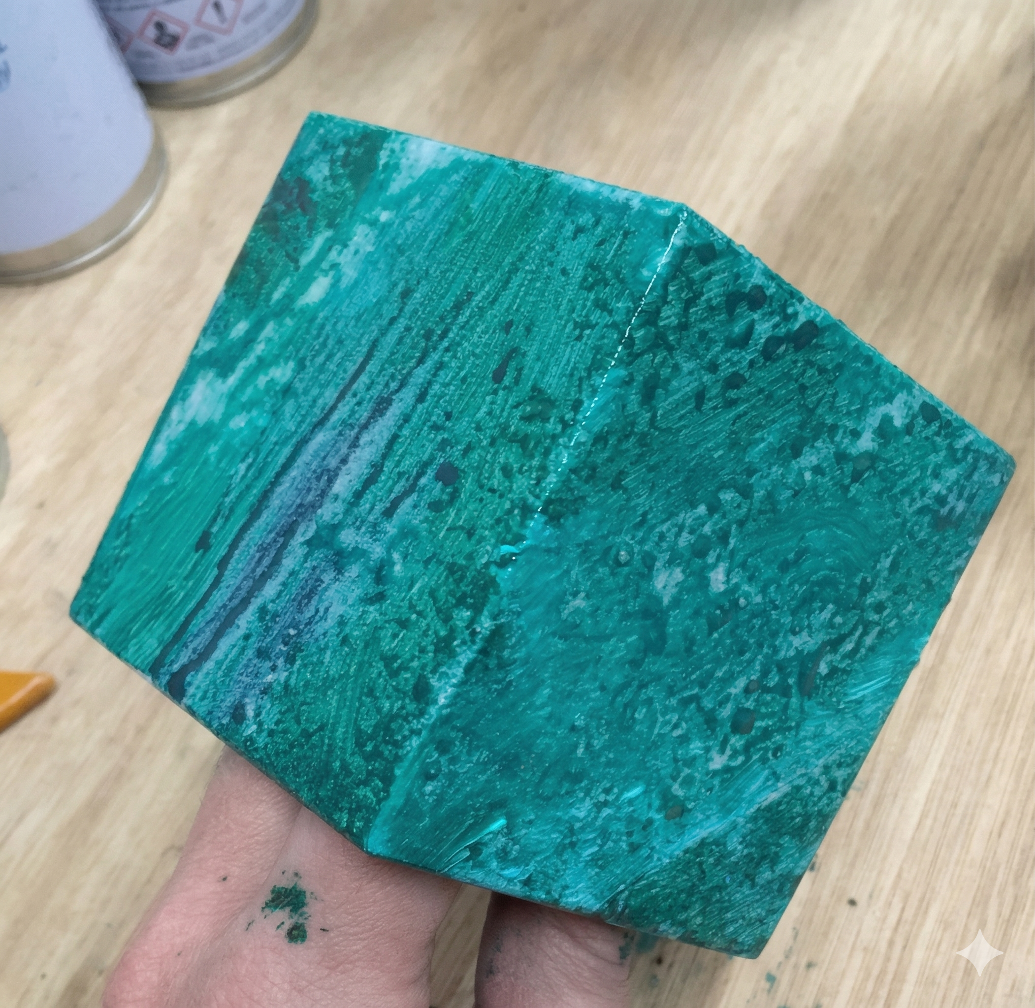 Remove cans of paint. Leave Madge’s hand